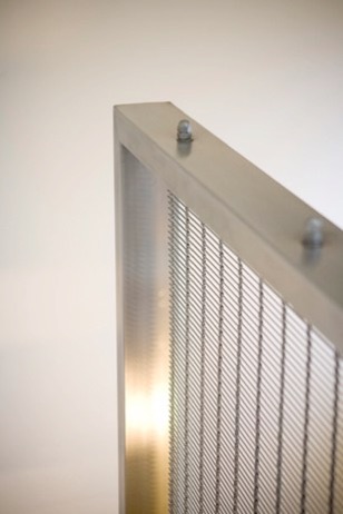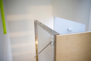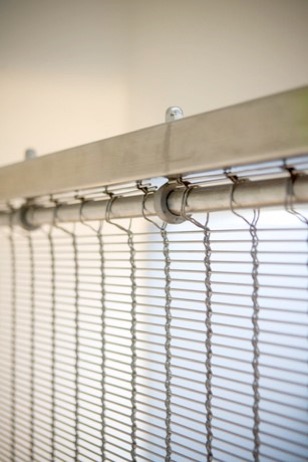 An architectural statement - the woven stainless steel mesh curtain forming the balustrade panel over two floors, shimmers with light and movement.
