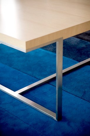 Many of the handrails in this residence are curved in one plane or spiral (two plane) to fit the curved building. The dining table, with timber veneer top on chrome steel frame with large extension system, extends from an 8 place to a 22 place table.