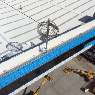 The structure consists of a stainless steel and galvanised column supporting a globe of stainless steel tube and pipe.